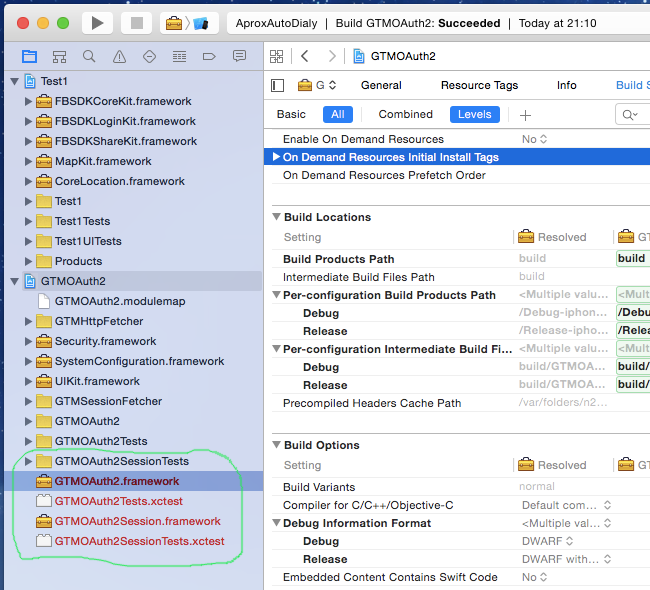 とにかく、赤字問題は放置することにしました、生成物の場所がはっきりわかりさえすれば何の問題もなくビルドしたFrameworkを使うことができますから。